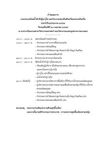 กิจกรรมงานประเพณีรดน้ำดำหัวผู้อาวุโส ของคณะวิศวกรรมและอุตสาหกรรมเกษตร วันพฤหัสบดีที่ 24 เม.ย. 2557 ณ อาคารเรียนรวมสาขาวิศวกรรมศาสตร์ รายละเอียดและกิจกรรมภายในงาน