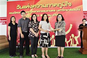 วันพุธที่ 23 สิงหาคม 2560 คณะวิศวกรรมและอุตสาหกรรมเกษตร จัดกิจกรรม "วันแห่งความภาคภูมิใจ คณะวิศวกรรมและอุตสาหกรรมเกษตร" บริเวณลานเอกนกประสงค์ ชั้น 1 อาคารเรียนรวมสาขาวิศวกรรมศาสตร์