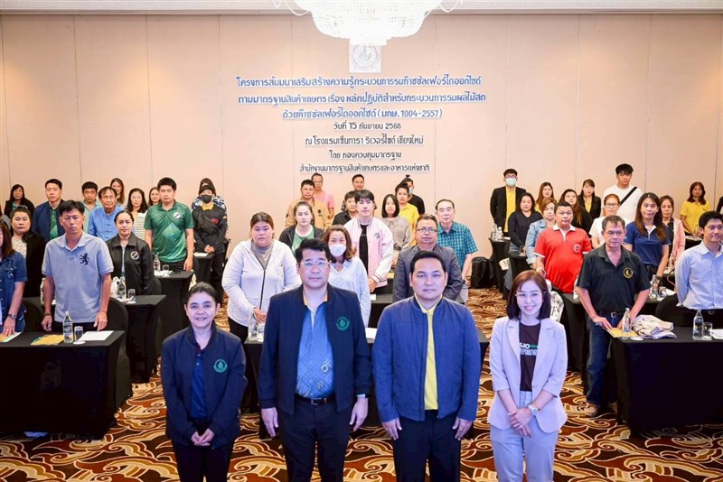 ได้รับเชิญจากสำนักงานมาตรฐานสินค้าเกษตรและอาหารแห่งชาติ (มกอช.) ร่วมเป็นวิทยากรบรรยายในโครงการสัมมนา “หลักปฏิบัติสำหรับกระบวนการรมผลไม้สดด้วยก๊าซซัลเฟอร์ไดออกไซด์ (มกษ.1004–2557)” ณ โรงแรมเซ็นทารา ริเวอร์ไซด์ จังหวัดเชียงใหม่