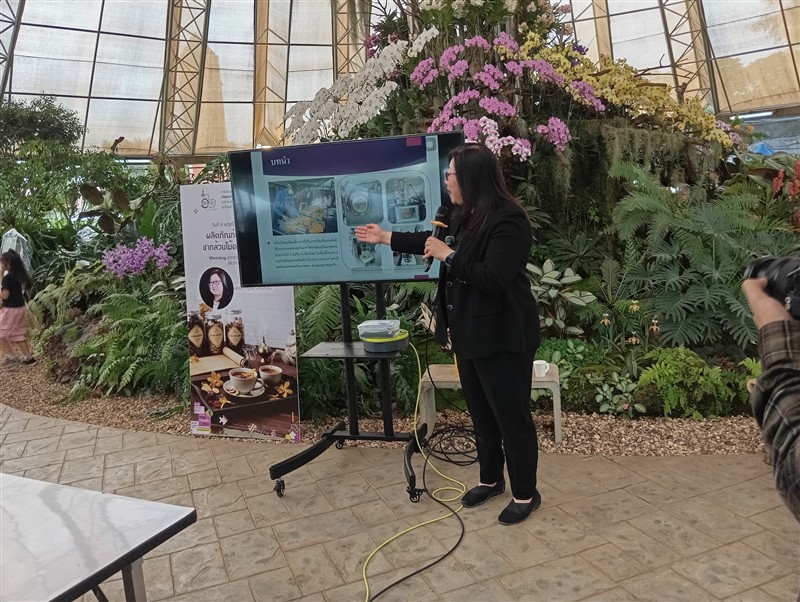 กิจกรรมในครั้งนี้ได้รับเกียรติจาก ผู้ช่วยศาสตราจารย์ ดร.กาญจนา นาคประสม คณบดีคณะวิศวกรรมและอุตสาหกรรมเกษตร เป็นวิทยากรให้ความรู้ด้านการพัฒนาผลิตภัณฑ์ชาสมุนไพรและชากล้วยไม้ดอกเอื้องคำ พร้อมสาธิตกระบวนการผลิตและเทคนิคการชงชาเพื่อสุขภาพ